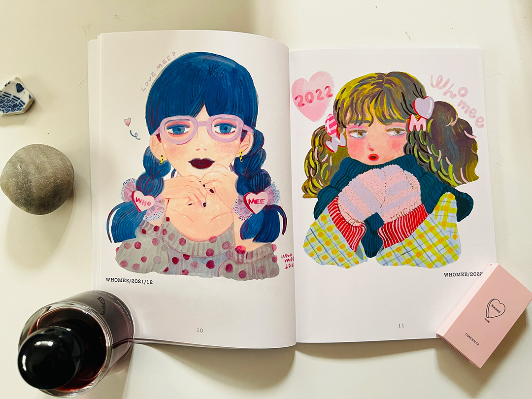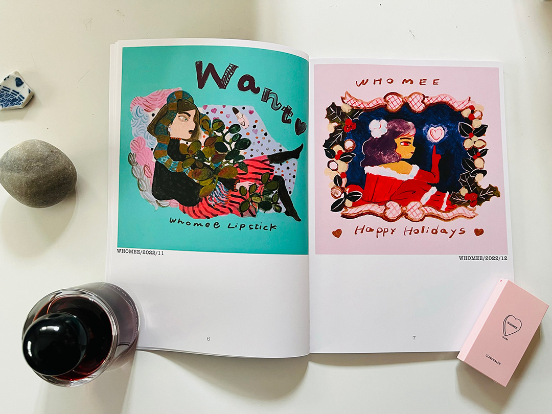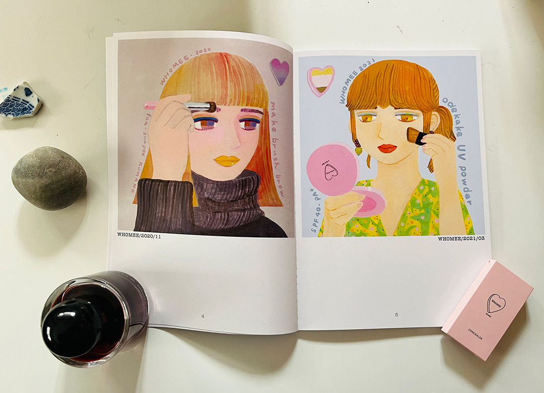 コスメブランドwhomeeでのイメージイラストレーションの約3年の連載のお仕事をまとめたイラストレーション集のZINEを販売中です!